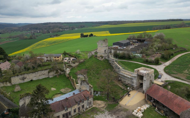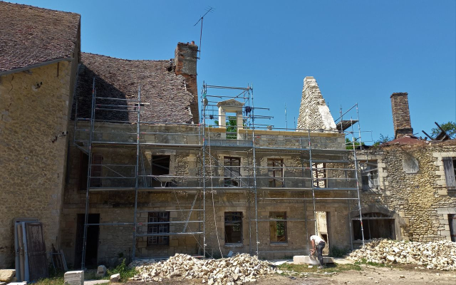 Dans un premier temps, les bénévoles dévégétalisent le site car il faut tout nettoyer (la cour, les fossés, la motte). En 2018, les premiers travaux de maçonnerie débutent. La consolidation du bâti en danger est lancée (chemise au sommet de la motte, angle de la grange, courtine ouest, tour-porte de la cour noble…)