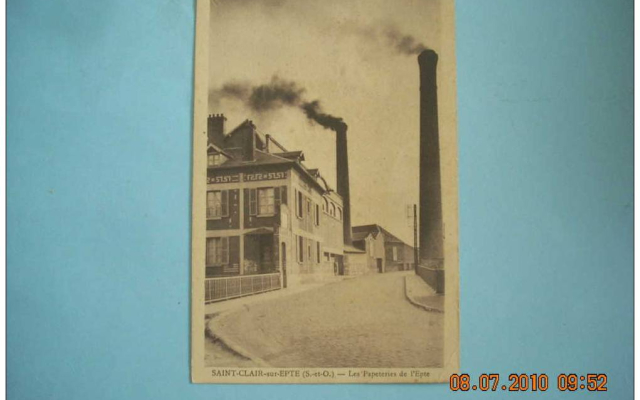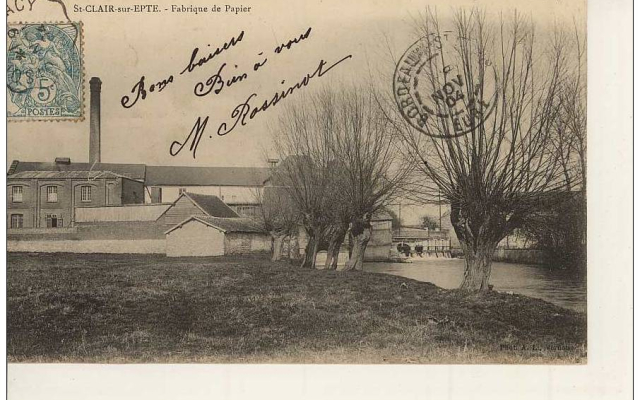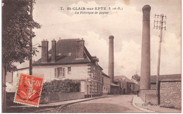 CHATEAU SUR EPTE – SAINT CLAIR SUR EPTE : Ces deux communes, que l’Epte sépare, ont partagé la vie des Papeteries de St.Clair, comme on les appelait communément. L’emprise de l’usine se trouvait sur la commune de Chateau sur Epte alors que la chute d’eau dépendait de St.Clair.